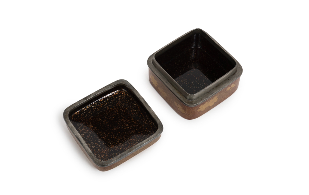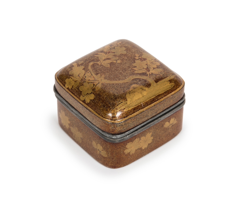 Kobako en laque nashiji de forme carré, décor en hira maki-e d’un cerisier en fleurs