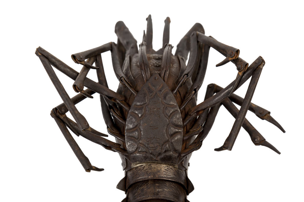 Il en va de même au Musée National de Tokyo : Myôchin Munekiyo (明珍宗清), Jizai okimono (figure articulée) d’une langouste, époque Edo, XVIII-XIXe siècle, fer. Inv. E-20286