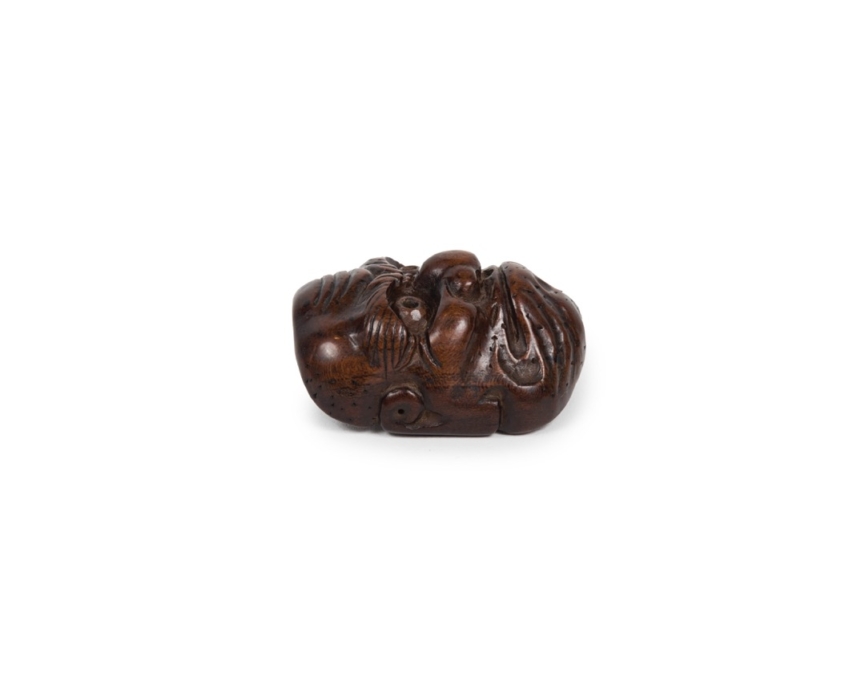 Netsuke en bois de buis représentant le masque de Hyottoko dans le théâtre Nô.