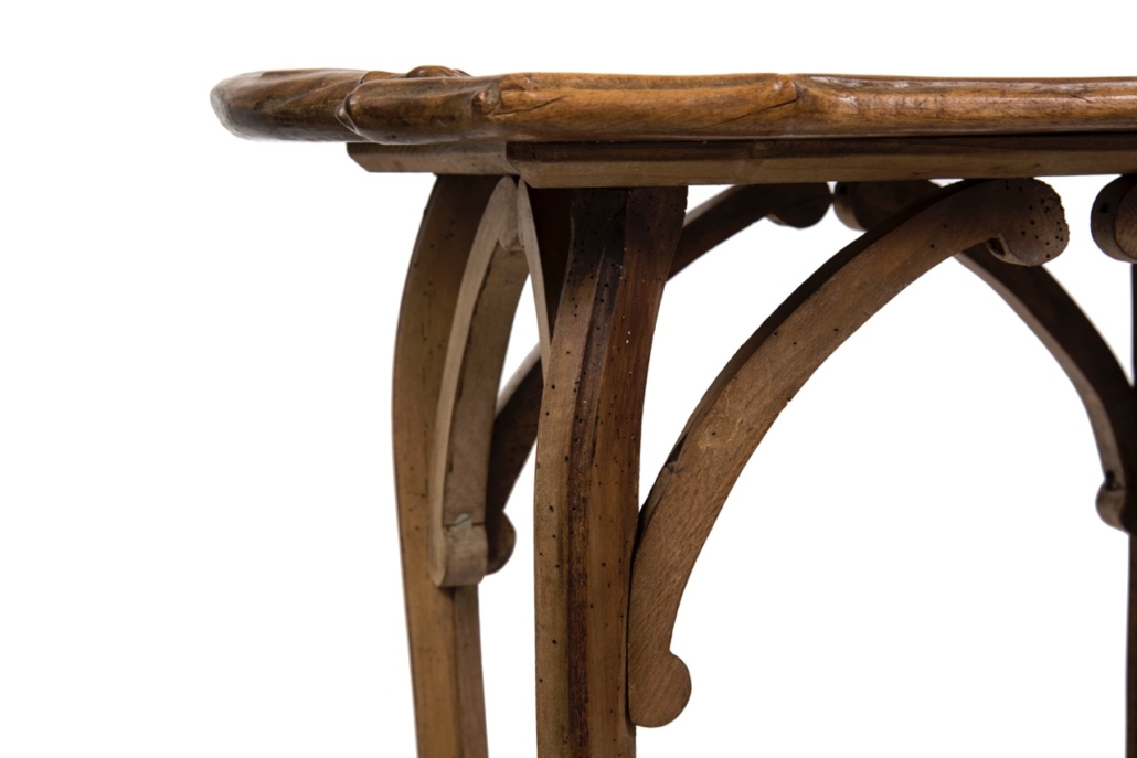 Les pieds, légèrement galbés, forment quatre arc brisés pour soutenir le plateau supérieur.